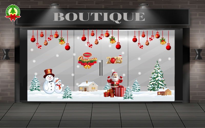 Đối với các cửa hàng kinh doanh, decal trang trí noel quận 8 là giải pháp nhanh chóng để thu hút ánh nhìn từ bên ngoài. Đặc biệt, Decal dán kính Noel Quận 8 giúp tận dụng mặt kính sẵn có để tạo điểm nhấn mà không cần đầu tư lớn.
