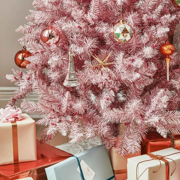 - Về màu sắc: Những gam màu truyền thống như vàng, bạc, đỏ, xanh lá vẫn là lựa chọn tối ưu. Tuy nhiên, xu hướng 2025 nghiêng về sự kết hợp phối màu như hồng phấn – vàng đồng, xanh ngọc – bạc, hay thậm chí là các dây kim tuyến đổi màu (color shift). Điều quan trọng là bạn cần xác định chủ đề màu sắc chính cho cây thông trước khi mua.