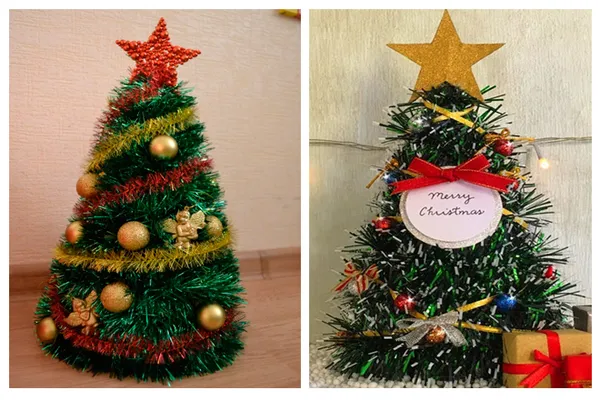 Gợi ý ý tưởng trang trí cây thông noel đẹp với dây kim tuyến: